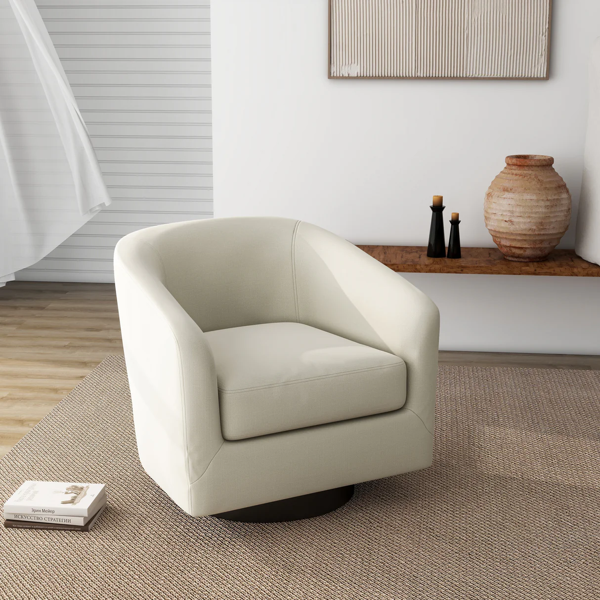 With its classic colors and streamlined silhouette, this swivel barrel chair exudes a neo-classical charm that instantly elevates any space and brings an air of refinement to a space, without feeling stuffy. Whether you’re going for a traditional, contemporary, or transitional decor, this chair effortlessly blends in, becoming the focal point of any room.